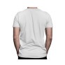 Camiseta desenvolvida em tecido de malha branco e estampada em silk cinza. Sem estampa nas costas. Possui etiqueta de tafetá nas costas. Gola redonda canelada 2x1 2 cabos pespontada na máquina de cobertura, tapa costura na gola com reforço de ombro a ombro, punho e barra com costura dupla. Composição: 100% Algodão