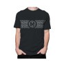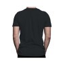 Camiseta desenvolvida em tecido de malha preto e estampada em silk branca. Sem estampa nas costas. Possui etiqueta de tafetá nas costas. Gola redonda canelada 2x1 2 cabos pespontada na máquina de cobertura, tapa costura na gola com reforço de ombro a ombro, punho e barra com costura dupla. Composição: 100% Algodão